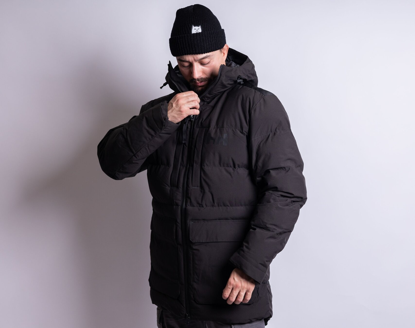 Černá pánská Zimní bunda značky Helly Hansen.