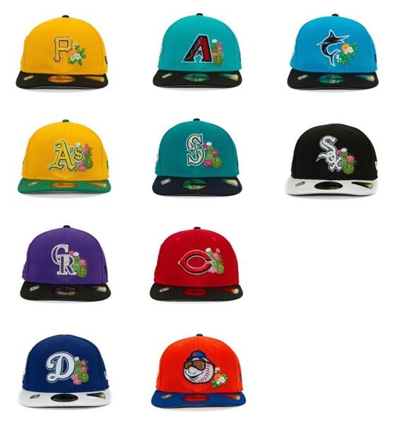 Na rozdíl od klasických MLB on-field čepic, které musí přesně dodržovat týmové barvy, si u Spring Training kolekce designéři New Era mohou dovolit trochu víc kreativity.