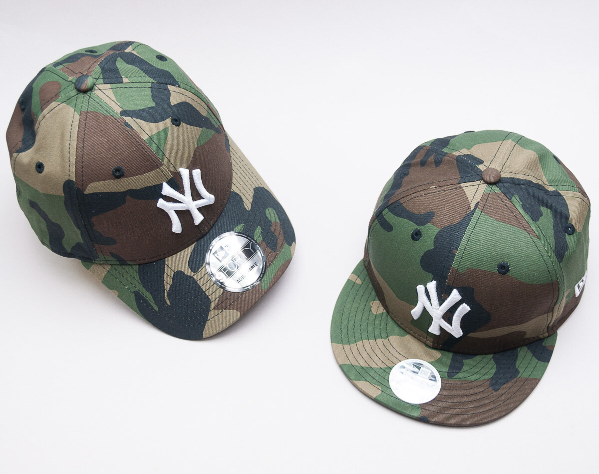 Maskáčová dámská kšiltovka značky New Era s motivem baseballového týmu New York Yankees.