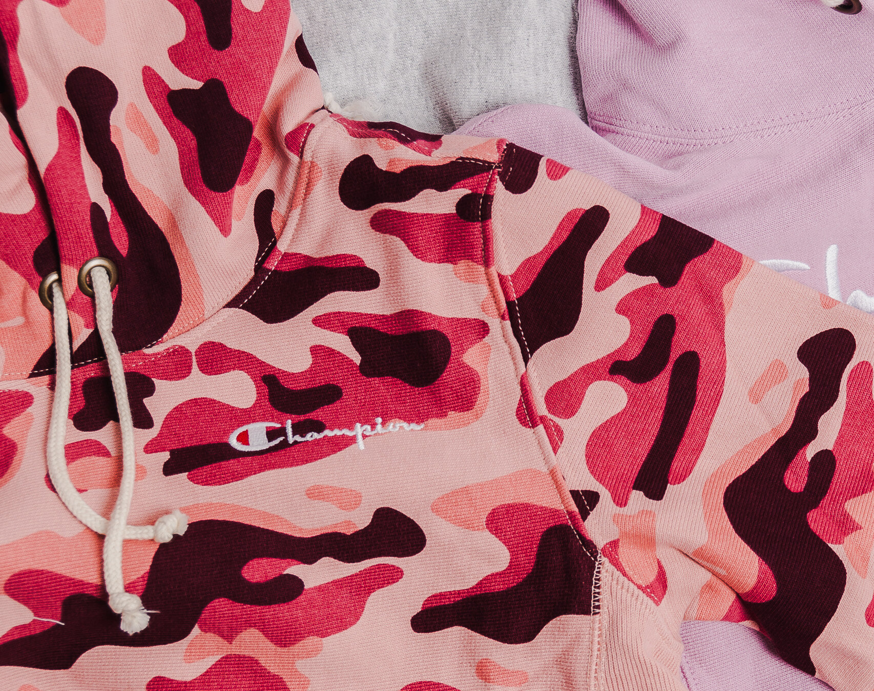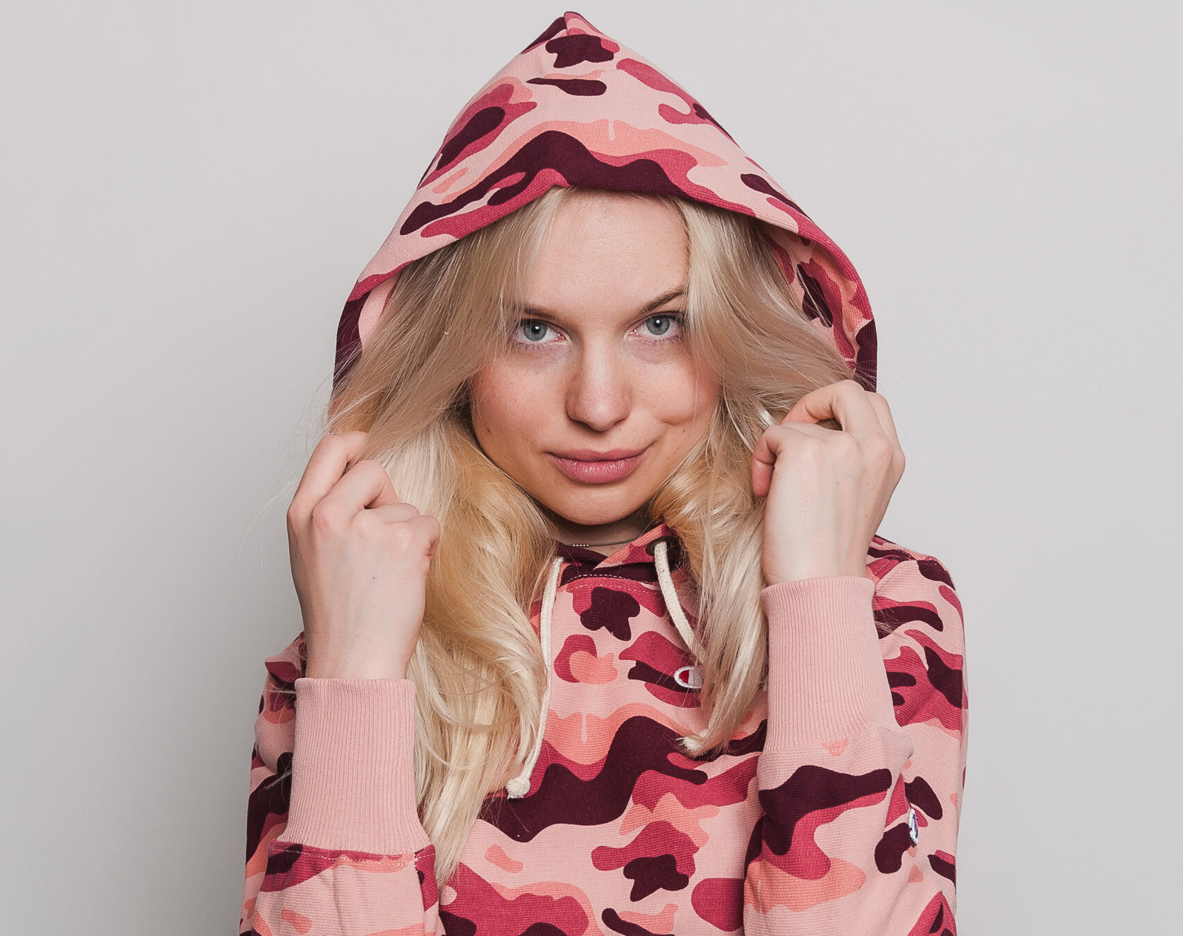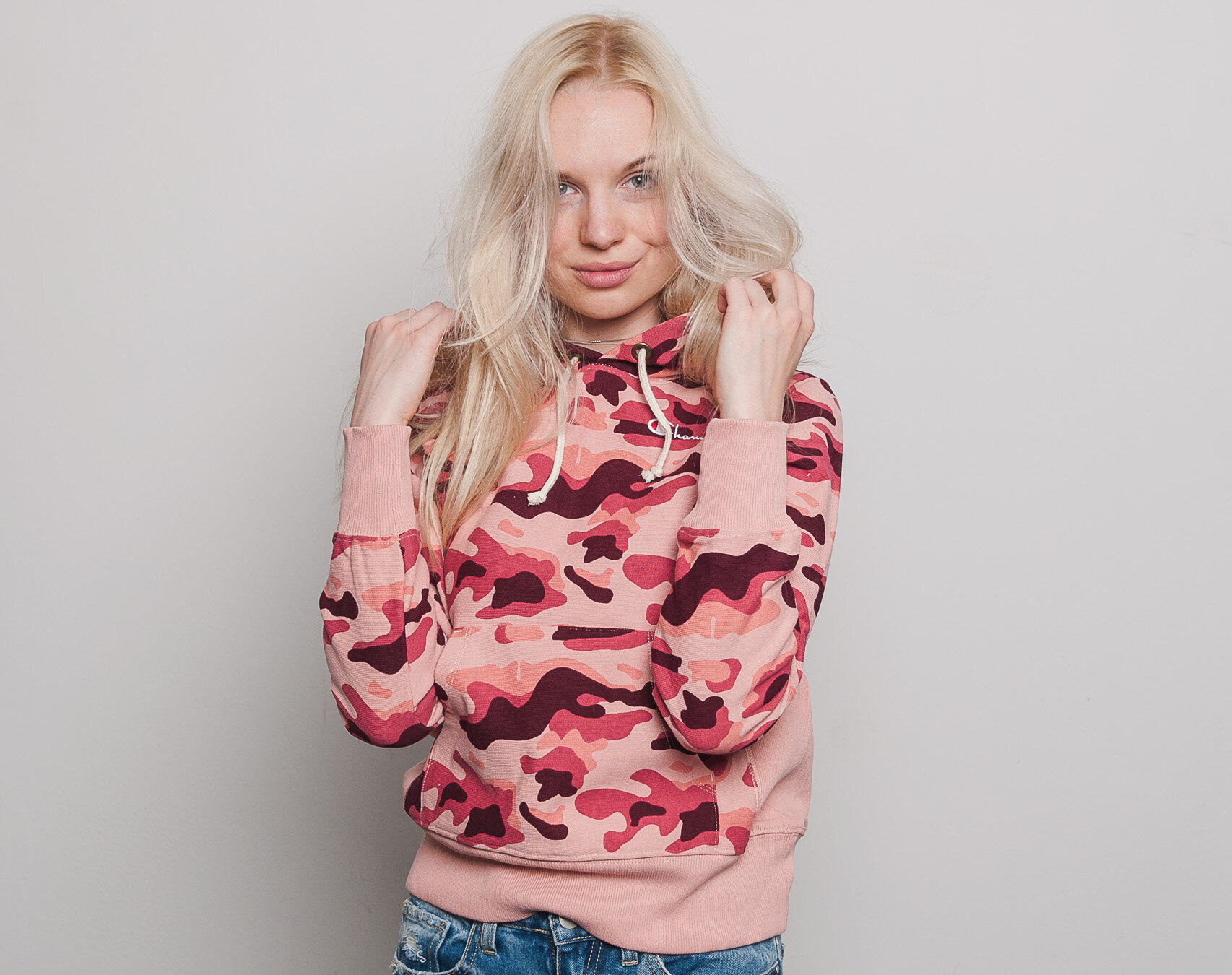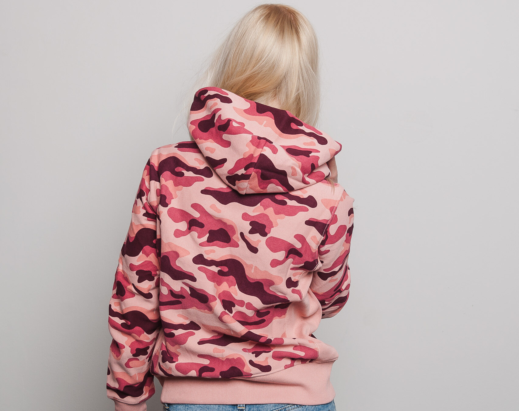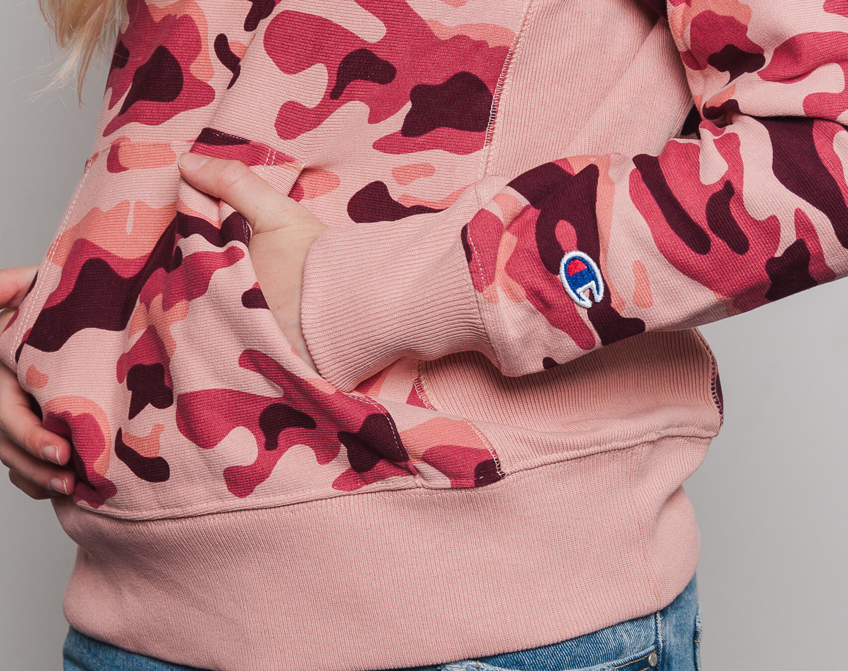 Dámská Mikina S Kapucí Champion Classic Mini Logo Embroidered Pink Camo 110035 PL003 RTN