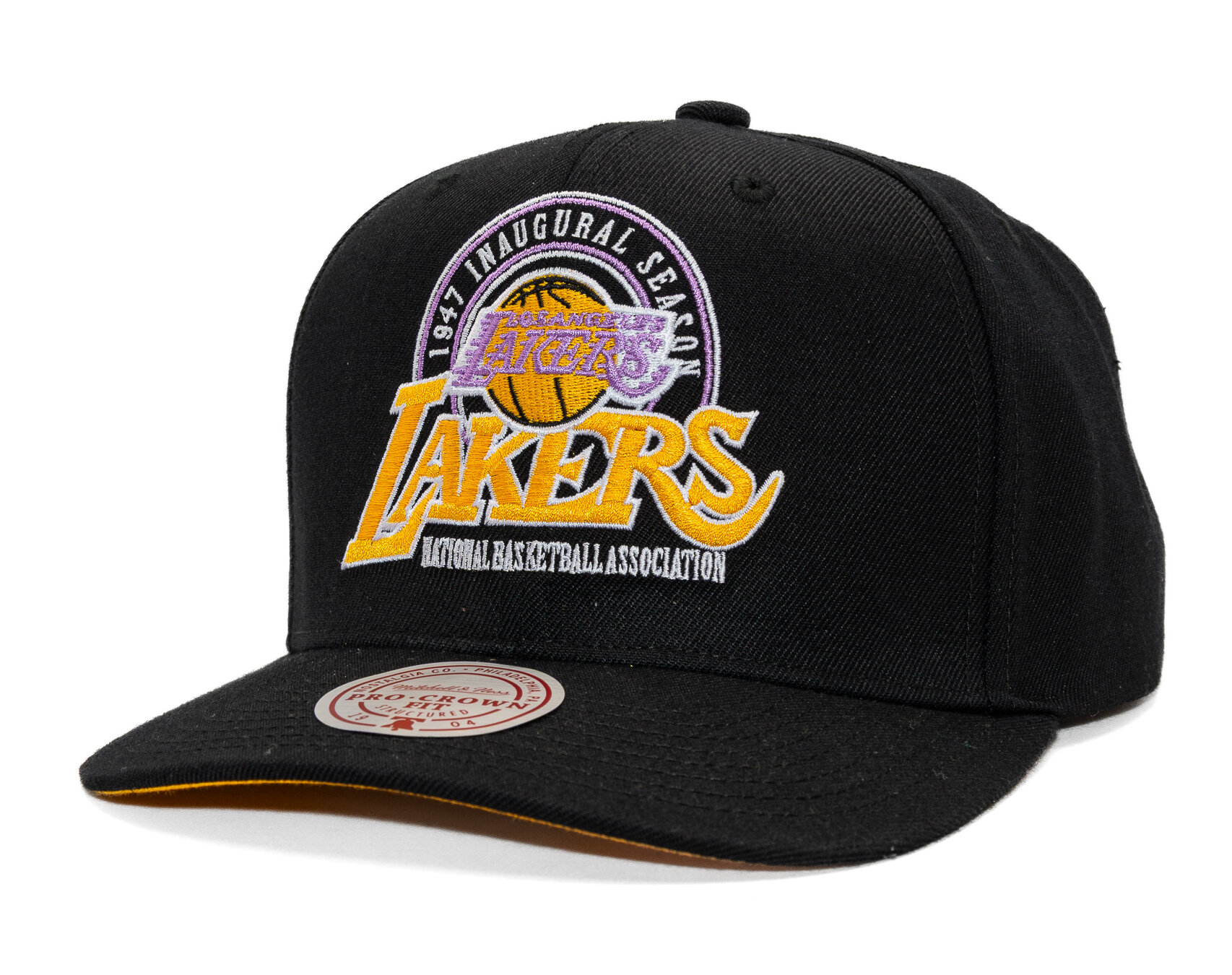 Černá pánská kšiltovka značky Mitchell & Ness s motivem týmu Los Angeles Lakers.