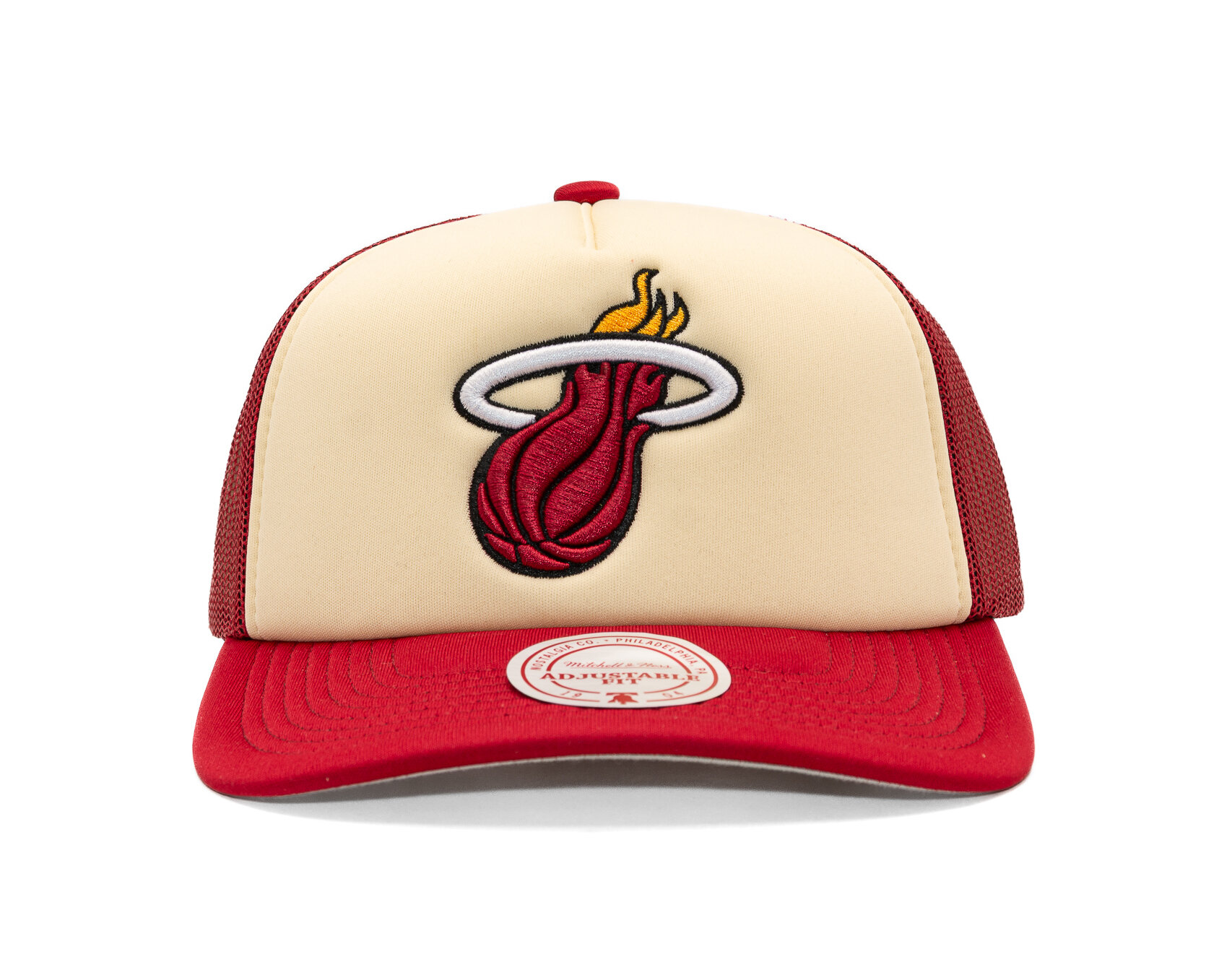 Červená pánská kšiltovka značky Mitchell & Ness s motivem týmu Miami Heat.