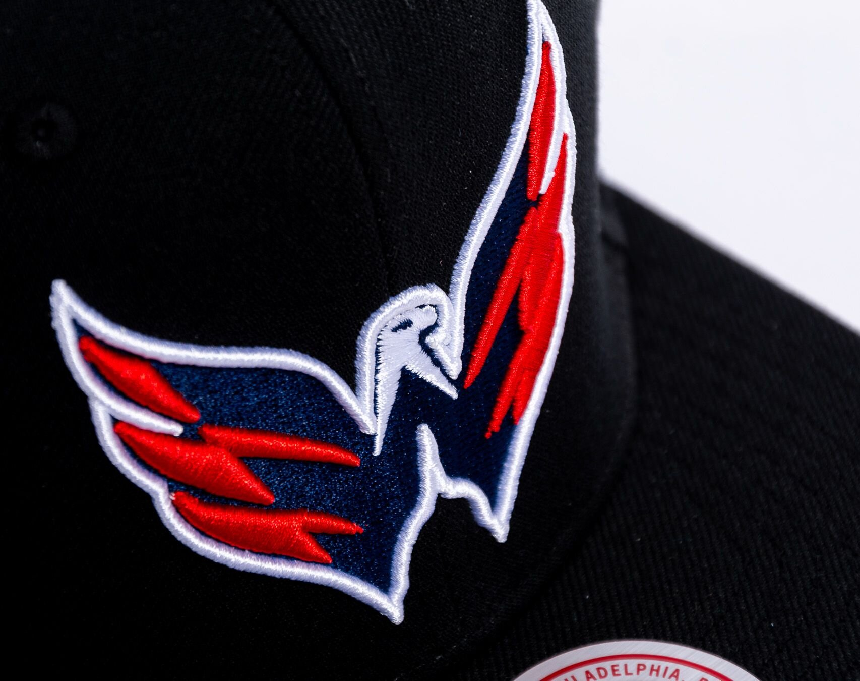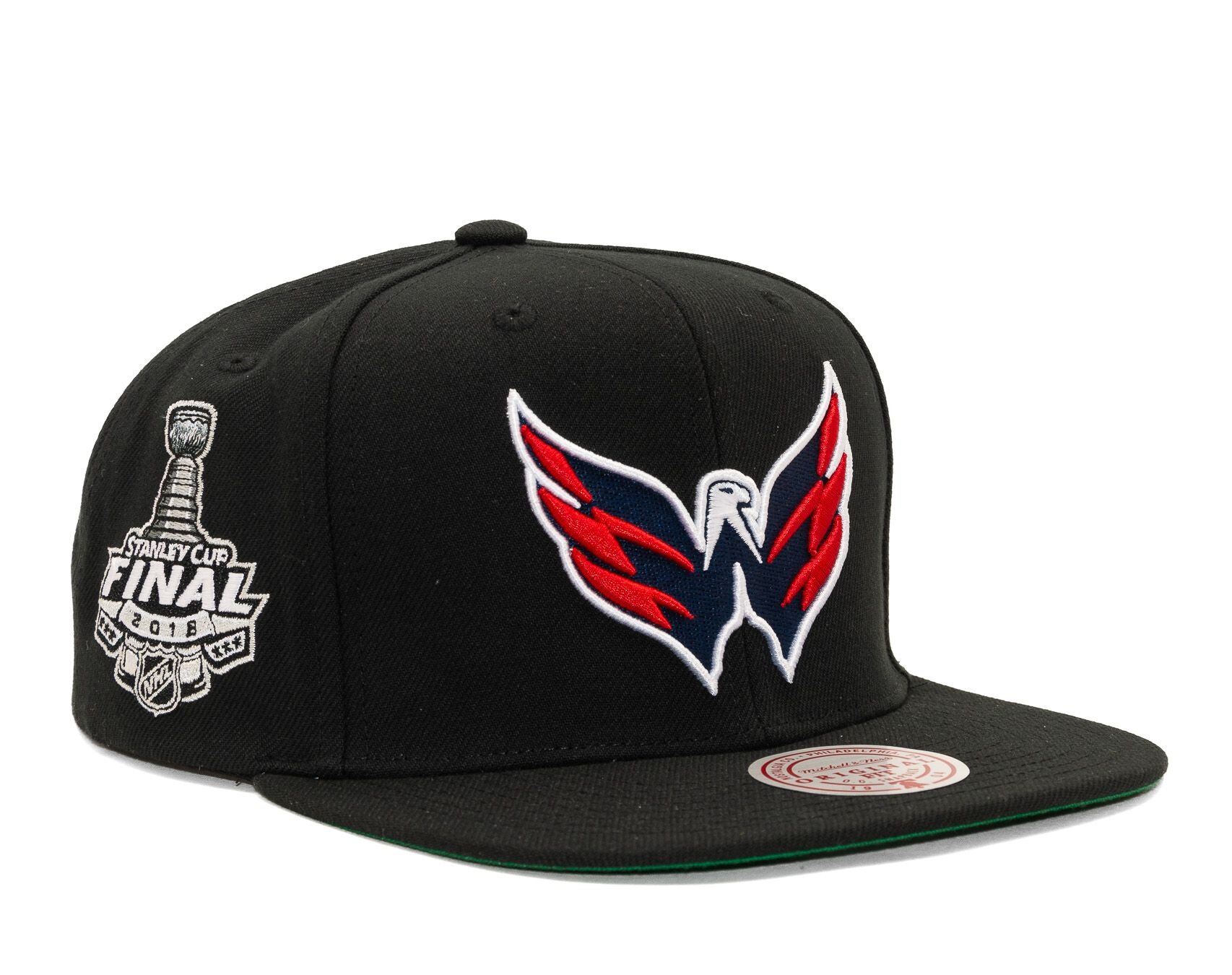 Černá unisex kšiltovka značky Mitchell & Ness s motivem hokejového týmu Washington Capitals.