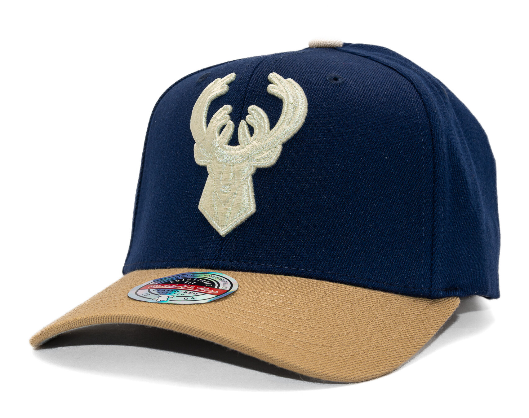 Hnědá pánská kšiltovka značky Mitchell & Ness s motivem basketbalového týmu Milwaukee Bucks.