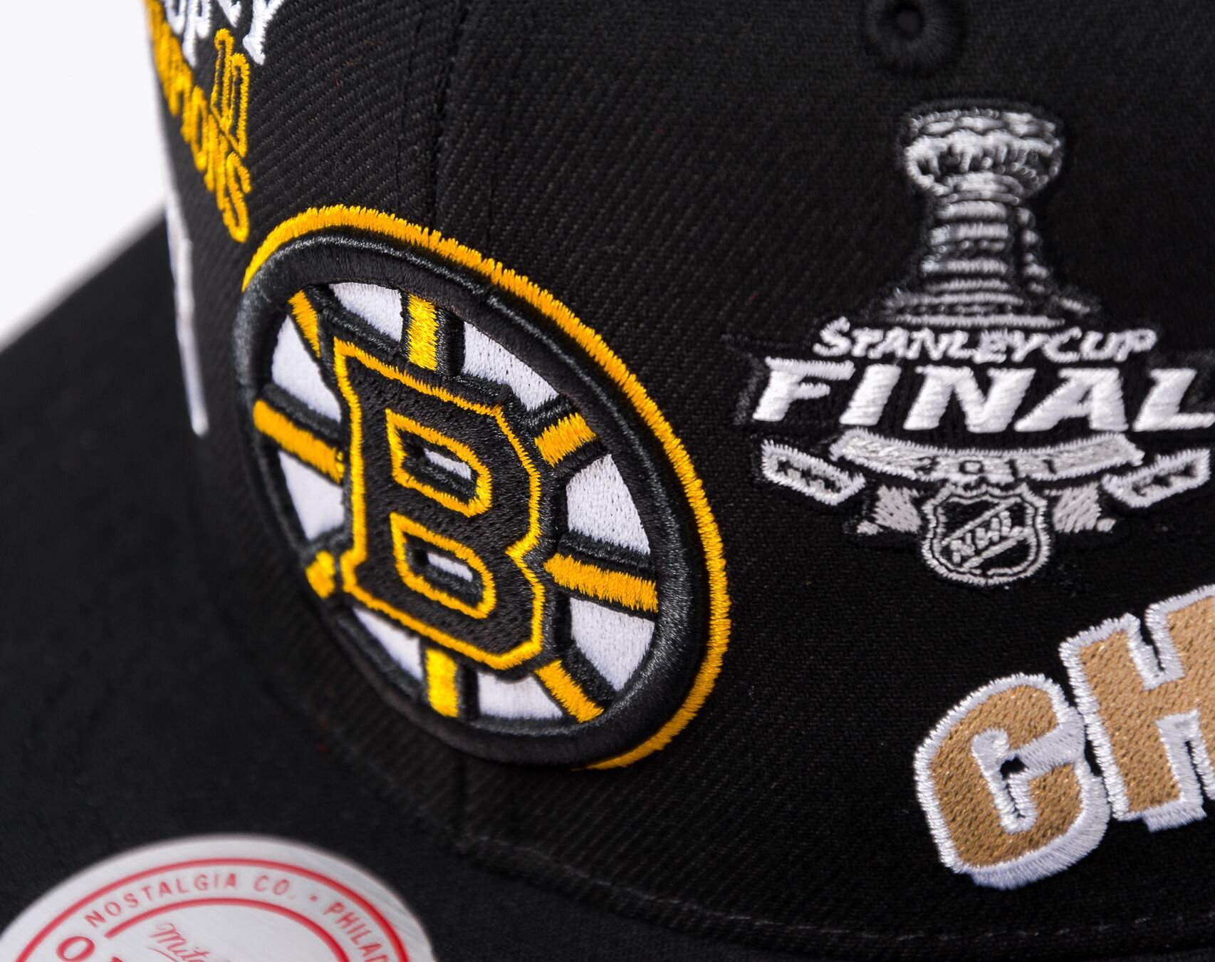 Černá unisex kšiltovka značky Mitchell & Ness s motivem hokejového týmu Boston Bruins.