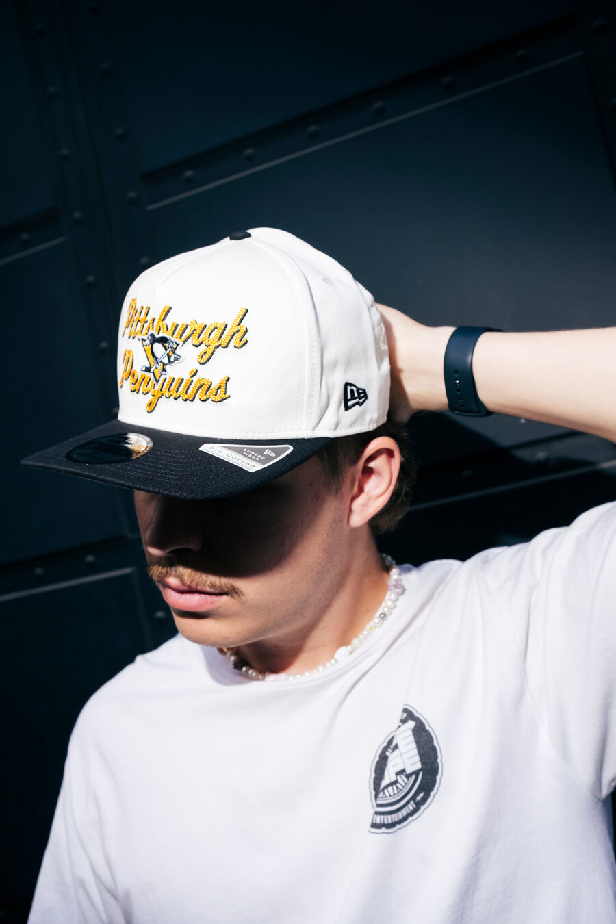 Bílá pánská kšiltovka značky New Era s motivem hokejového týmu Pittsburgh Penguins.