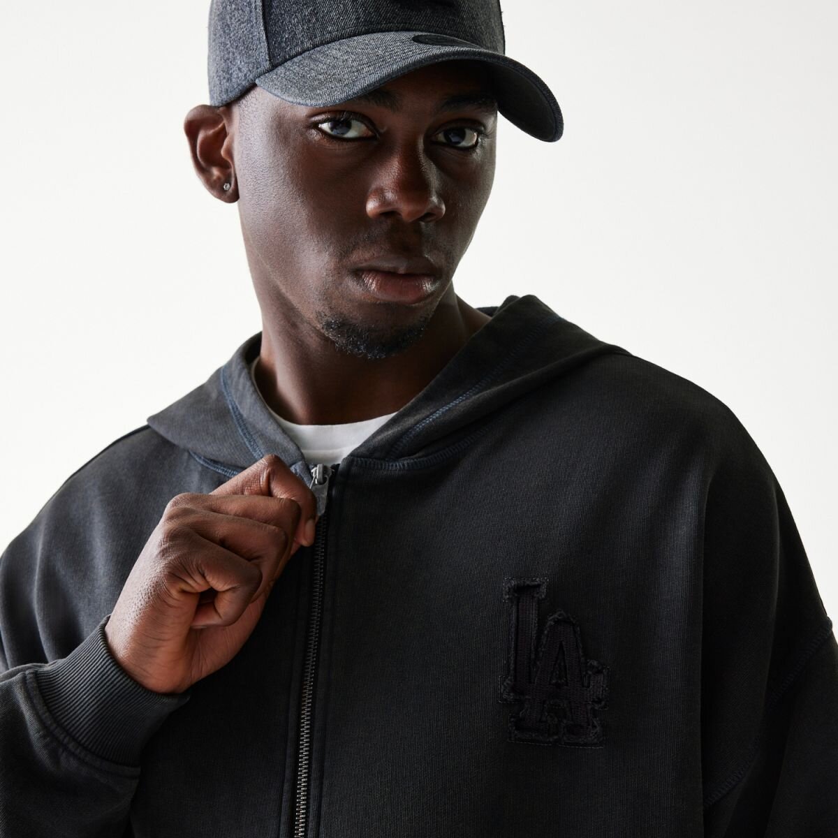 Černá pánská mikina značky New Era s motivem baseballového týmu Los Angeles Dodgers.