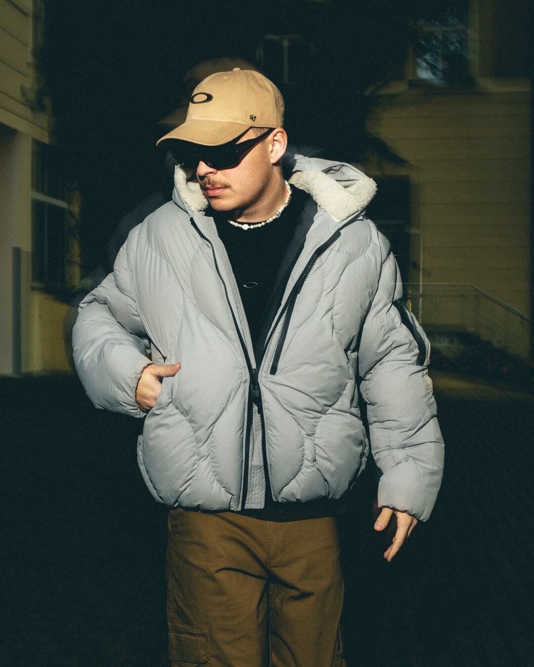 Šedá pánská bunda značky Oakley.