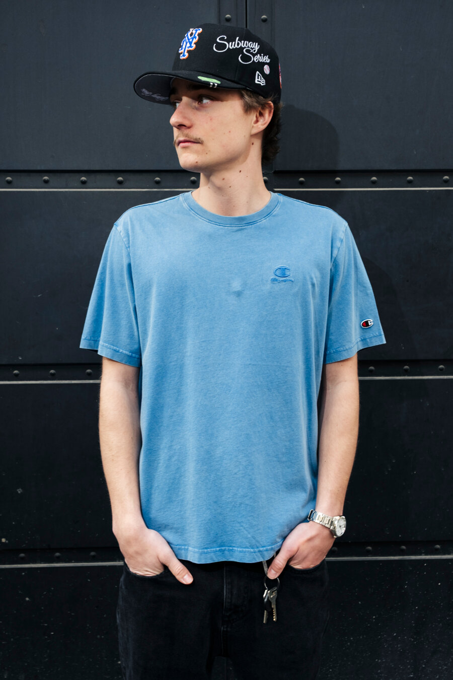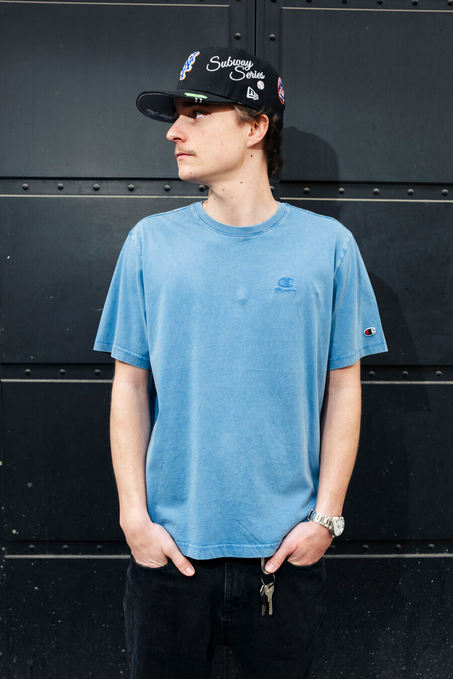 Světle Modré triko značky Champion.