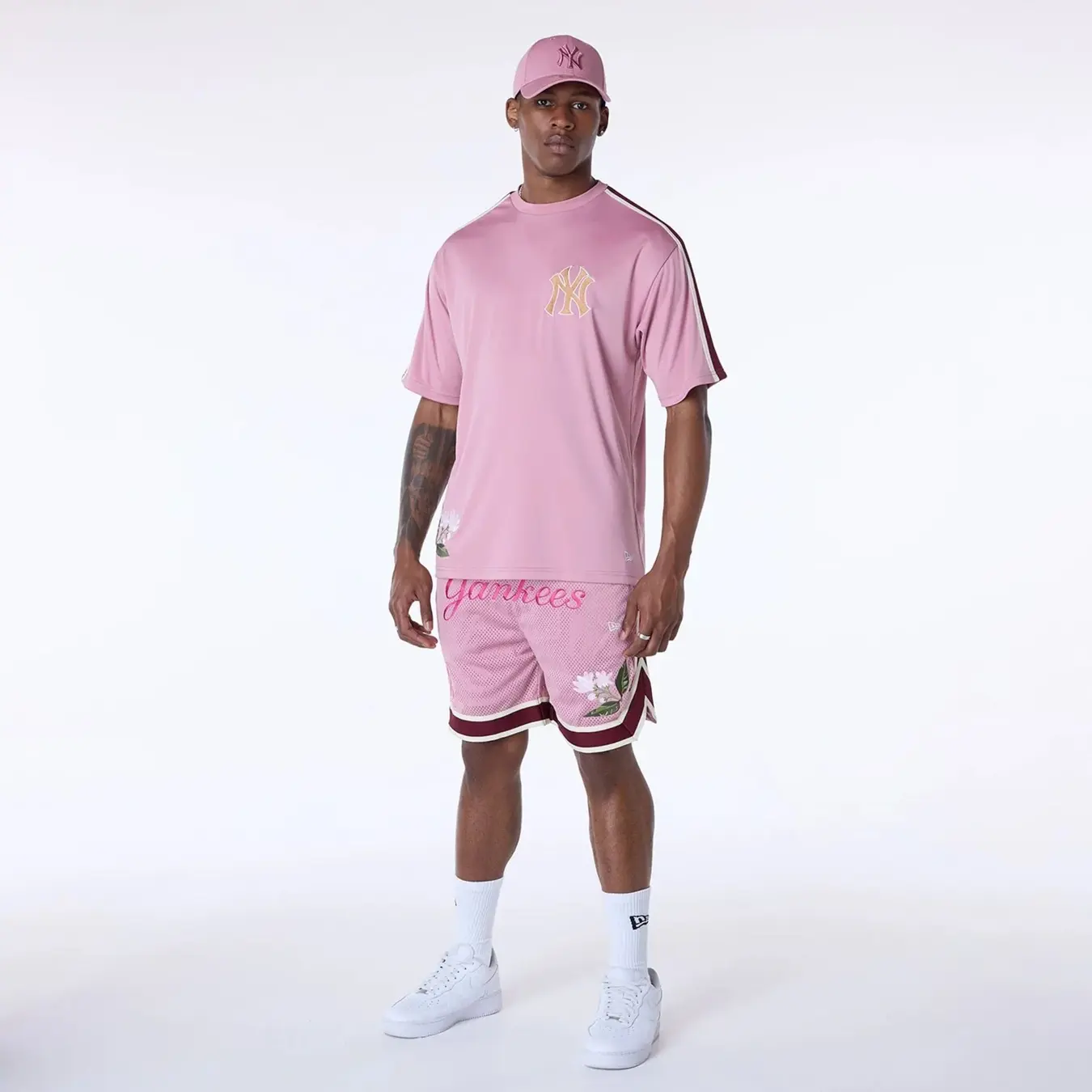 Růžové pánské triko značky New Era s motivem baseballového týmu New York Yankees.