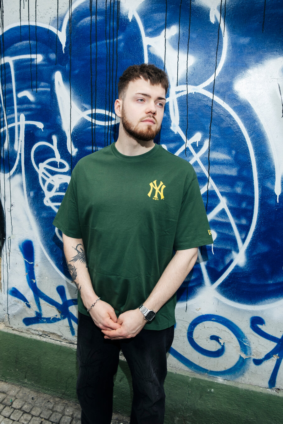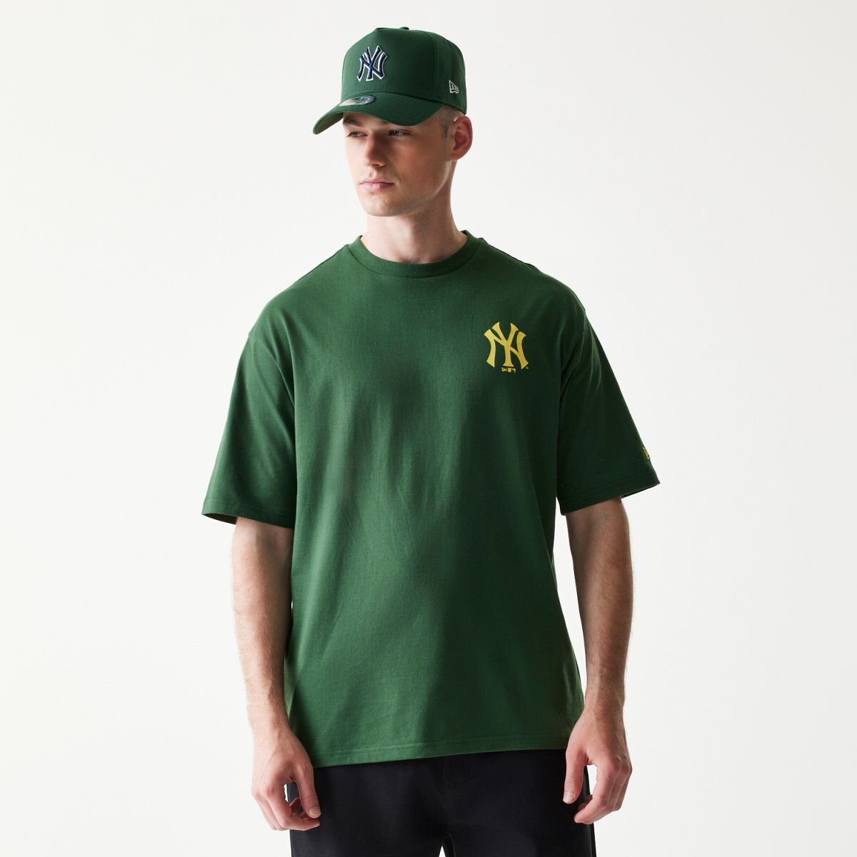 Zelené pánské triko značky New Era s motivem baseballového týmu New York Yankees.